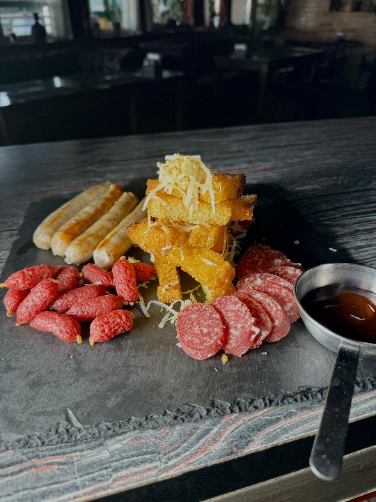 Колбаски, баварские колбаски, крылья барбекю, суджук, гренки