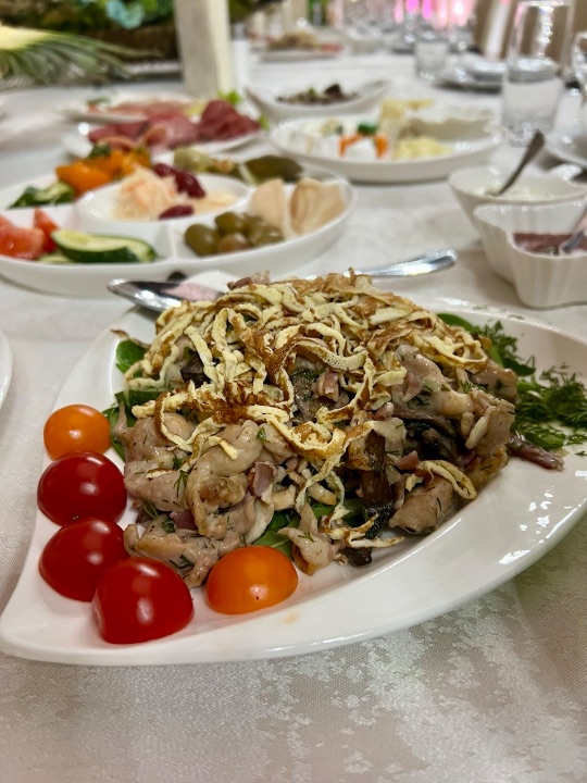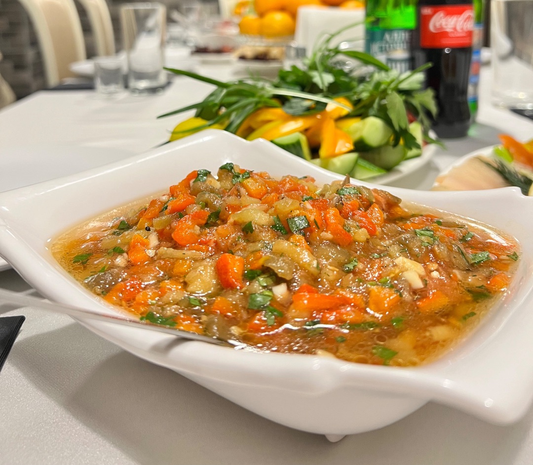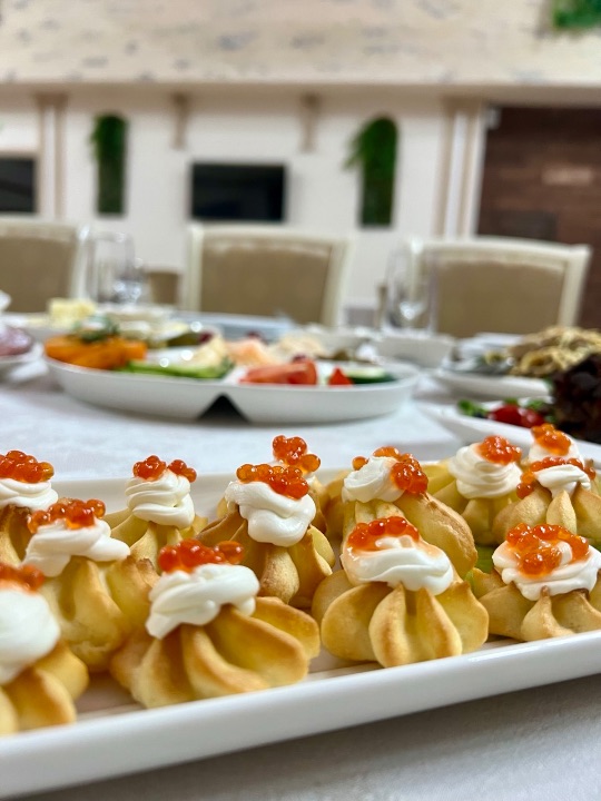 Меню ресторана разнообразно и включает в себя как традиционные блюда, так и авторские кулинарные творения нашего шеф-повара. Мы также предлагаем возможность индивидуального подбора блюд и оформления стола под каждое мероприятие.